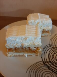 Hozzávalók: – 3 tojásos piskóta Dia-Wellness piskóta lisztből – 8 db nagy alma reszelve –