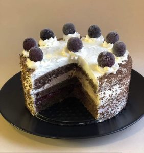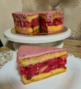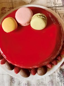 Tejcsokoládés-gyümölcsös mousse tükörglazúr torta