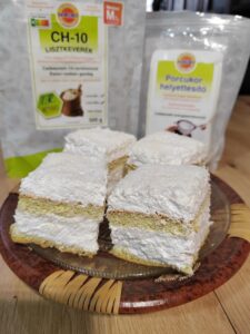 Recept : Piskóta: -10 tojás -8 evőkanál Dia-Wellness CH-10 liszt -1 evőkanál Dia-Wellness porcukor helyettesítő