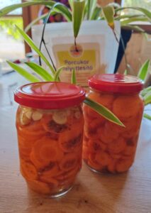 Hozzávalók: -4 sárgarépa, hámozva és karikákra szeletelve -1 csésze fehér ecet (10%-os) -1/2 csésze víz