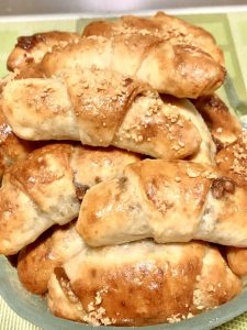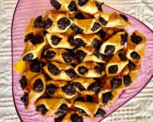 Hajtogatott tepertős-szilvalekváros papucs és pogácsa