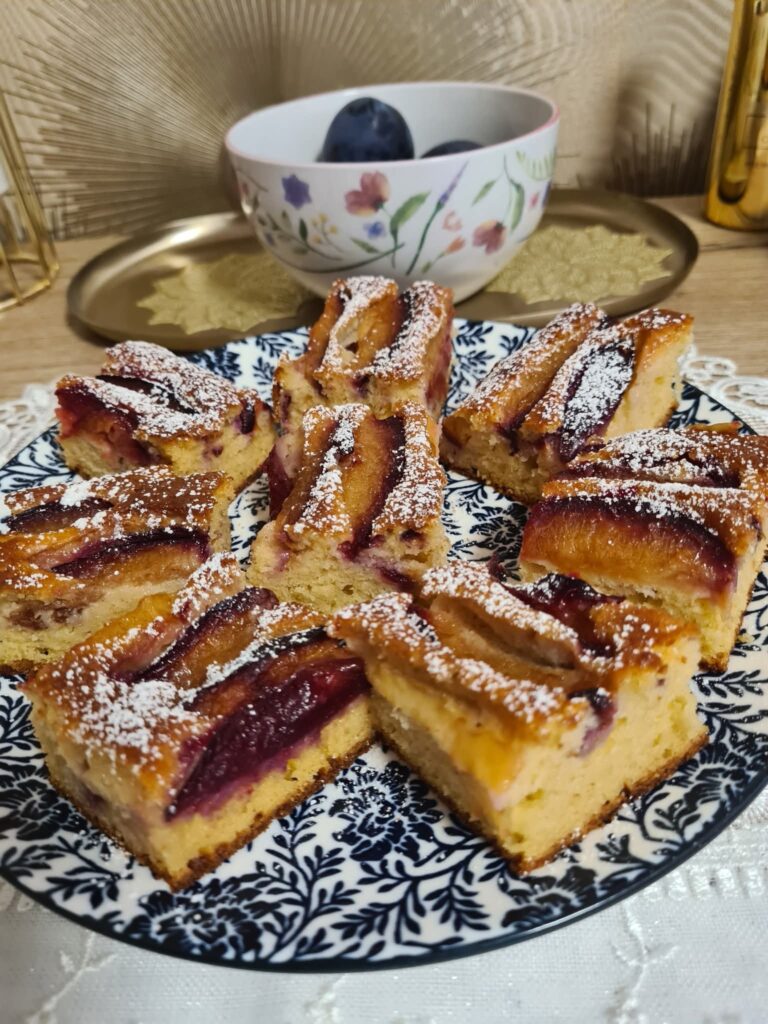 Elkészítés: Mindent tálba rakni és jól elkeverni. Sütőpapírral bélelt tepsibe önteni, a tetejére rárakni a szilvát. Sütés 180 fok 35 perc.