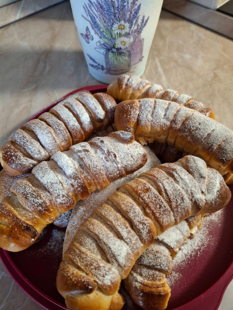 Bordás kifli barack lekvárral és túrókrémmel töltve Dia-Wellness Kelttészta keverékből