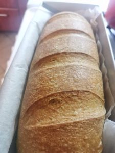 A száraz hozzávalókat összekevertem, belemorzsoltam az élesztőt, majd hozzáadtam az MCT olajat és közepes fokozaton elkezdtem dagasztani. Fokozatosan adtam hozzá a langyos vizet. Jól kidagasztottam. Meleg helyen 1 órát kelesztettem, majd sütőpapírral bélelt formába tettem. Tetejét bevagdaltam. Meleg helyen még további 1/2 órát kelt, vízzel lekentem, alufóliával letakartam. Előmelegített sütőben 170 fokon kb.30 percig (láttam, hogy púposodik ki a formából), majd az alufóliát levéve még 40 percig légkeverésen készre sütöttem. A formából kivettem és rácson hagytam kihűlni.