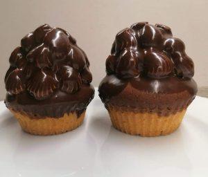 A margarint kihabosítottam a vaníliáscukorral, porcukorral és a tojásokkal, majd hozzáadtam a lisztet és a sütőport. A tészta felét elosztottam a muffinformákban és elosztottam a meggy szemeket 3db/ 1 forma. A maradék tésztához adtam a tejet és a kakaóport és ezt is elosztottam a formákra. 180⁰ on alsó-felső sütésen megsütöttem. A krémhez megfőztem a pudingot a szokott módon, majd mikor kihűlt a kihabosított vajjal összekevertem. A kihűlt muffinok tetejére raktam, kicsit a hűtőbe aztán bemártottam a megolvasztott, meghigított csokival.