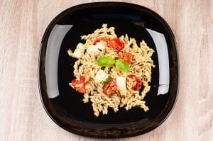 - 10 dkg Dia-Wellness szénhidrátcsökkentett orsótészta (kifőzve kb. 30 dkg)