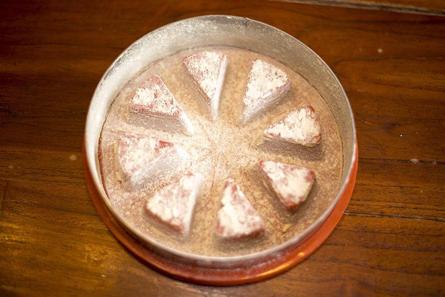 A Zila-formát kicsit kivajazzuk és kilisztezzük, majd beleöntjük a masszát.