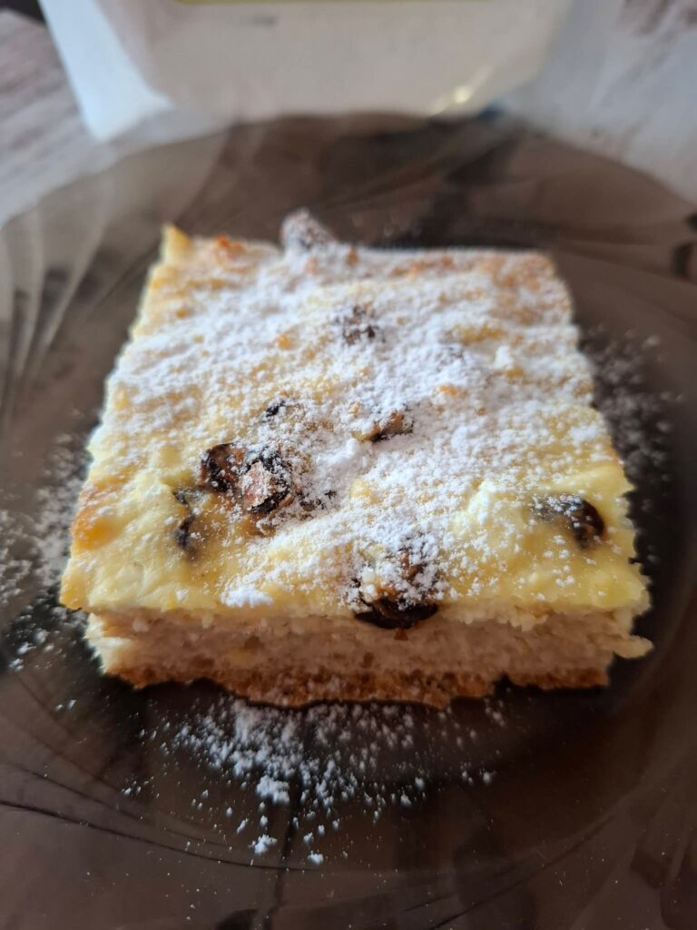 Jól kidagasztom, majd kelesztem. Tepsibe helyezem, erre szórok egy kevés zsemlemorzsát, majd rásimítom a túrós tölteléket.