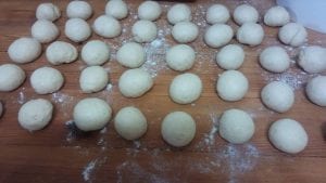 Ha kész kb 10 percet pihentetjük, majd 30g-os golyókat formálunk belőle.