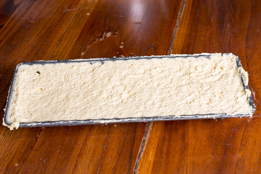 1-1 vajjal kikent, lisztezett őzgerincformába töltjük a tésztákat