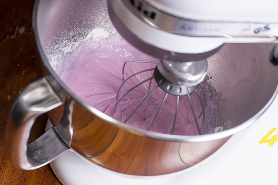 A tojásokat szétválasztjuk. A tojássárgáját az édesítőszerrel, majd a vízzel, és végül a szobahőmérsékletű margarinnal habosra kikeverjük.