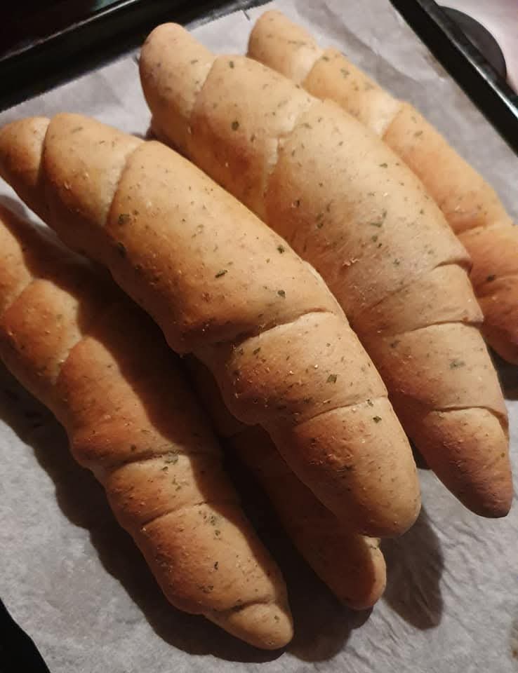 Elkészítés: A tésztát bedagasztom, duplájára kelesztem. 6-8 felé veszem, kigombócolom, majd vékonyra nyújtom és feltekerem. 20 percig pihentetem. A tetejét vízzel lekenem. Előmelegített sütőben 180 fokon pirosra sütöm.