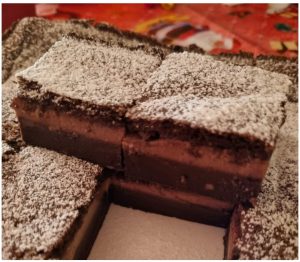 A vajat megolvasztom, hozzákeverem a 4 tojás sárgáját, az aromát, a tejet, az édesítőt, majd a végén a lisztet és a kakaót (csomómentesre). A tojásfehérjét felverem, majd beleforgatom a folyékony masszába. Előmelegített sütőben 170 fokon légkeverésen tűpróbáig sütöm. (Nálam 40 perc elég volt.)