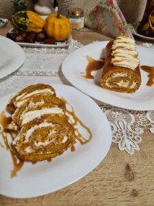 Krém: Mindent tálba rakunk, kihabosítjuk, megkenjük a kihűlt piskótát, feltekerjük, folpackba csomagoljuk, legalább 1 óra hűtés. Pár kanál krémet félrerakunk dekorálni.