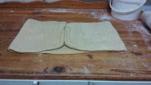A tészta ugyanaz a kelt tészta, mint a Túrós batyunak. Csak a formázás más. A