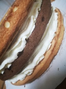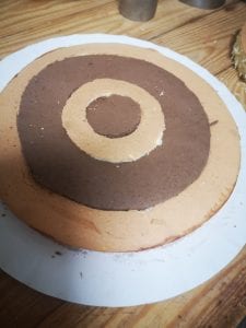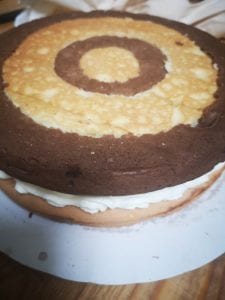 A Piskóta port a leírás szerint kell elkészíteni, 3 lap vaníliás és 3lap kakaóst.