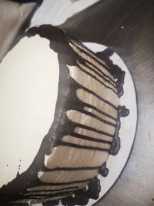 Olvasztok 50g kakaós Nassolót és a torta szélére csorgatom.