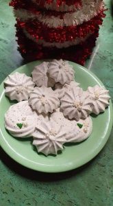 a porcukorhelyettesítővel kemény habbá vertem. Sütőpapíros tepsire talpat nyomtam a habból, majd a