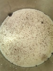 A tej másik felét a negyedannyival, vaníliával felforraljuk. Keverés közben hozzáöntjük a kakaós masszához.