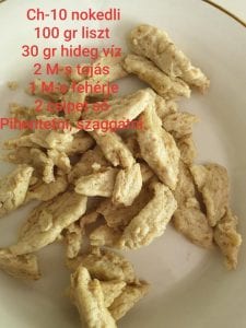 A tészta sokkal sárgább lett, mint a sima Ch mínuszból. Ízre hasonló.