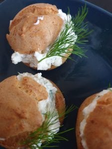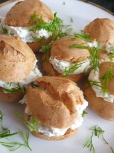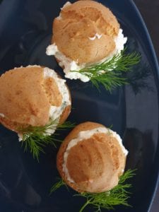 Mini tonhalas-sajtkrémes-kapros képviselőfánk. Nagyon praktikus vendégváró falatkák.