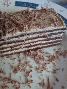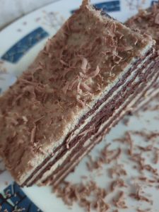 A krémet 5 egyenlő részre osztod és megkened a lapokat.