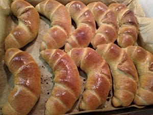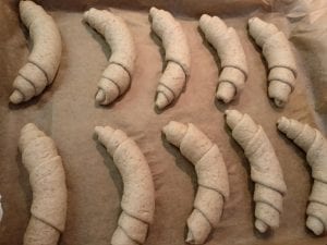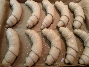 Először bedagasztom a tésztát majd 10percig pihentetetem. Ezután kifliket formázunk, és 40 perc kelesztjük.