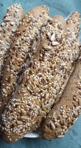 Elkészítés: A tésztát bedagasztom, majd duplájára kelesztem. Nyolc felé veszem, kigombócolom. A gombócokat kis pihenő után oválisra nyújtom. Úgy tekerem fel, hogy minden hajtásnál lenyomkodom, ha kész, akkor kicsit áthengergetem a kezem alatt. Vízzel jól lekenem, majd megforgatom a magkeverékben. Pihentetem fél óráig. Előmelegített sütőben légkeverésen, 180 fokon pirosra sütöm.