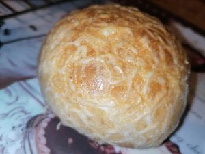 Dagaszt, duplájára keleszt, formáz, pihentet. Egész tojással lekenem, sajtot teszek rá. Lassan 150 fokon sütöm.