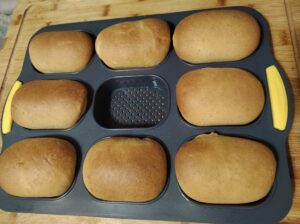 Az összetevőket összekevertem, dagasztógéppel kidagasztottam és kelesztőtálban kelesztettem. (Kétszer dobta le a tetejét). Formáztam, újra kelesztettem míg a duplájára dagadt. Vízzel lespricceltem, majd gőztérben 230 fokon alsó-felső módban légkeverésen sütöttem 5 percig, majd 200 fokon simán 10 percig! Sütés után szintén vízzel spriccelem.