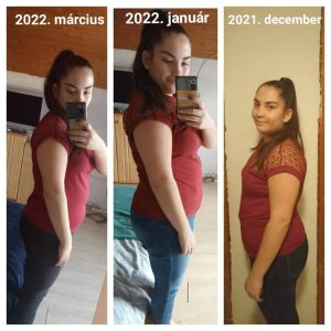 A mentorprogramig 3-4 kilótól szabadultam meg augusztustól, majd a program ideje alatt még 3-4 kiló ment le. A karácsony kicsit megviselt, ahogy mondani szokás bűnbe estem, de szorgalmasan írtam a bevitt kalóriát és nem igazán léptem túl a határt. Januárban kicsit stagnáltam. Sajnos még nem tudtam 100%-ig visszaállni az egészséges életmódra, ezért lassan, de biztosan veszítettem az elmúlt fél évben még 2-3 kilót.