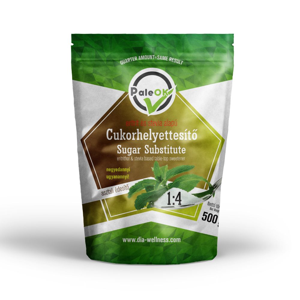 A Paleo 1:4-es cukorhelyettesítő stevia és erytriol felhasználásával készült, kiváló helyettesítője a répacukornak süteményekhez és egyéb édesítéshez, 1:4-es arányban helyettesíti a répacukrot.
